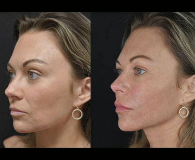 Results are visible immediately, with continued refinement as swelling subsides. Patients may experience mild swelling or tenderness, but most return to normal activities the same day.